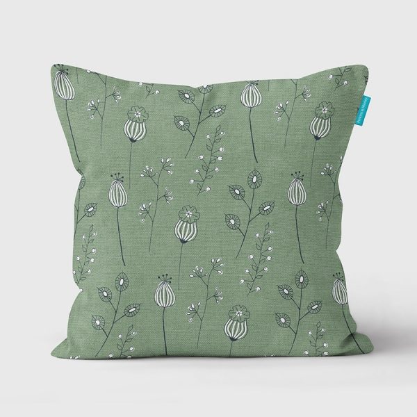 poppies & alliums green cushion