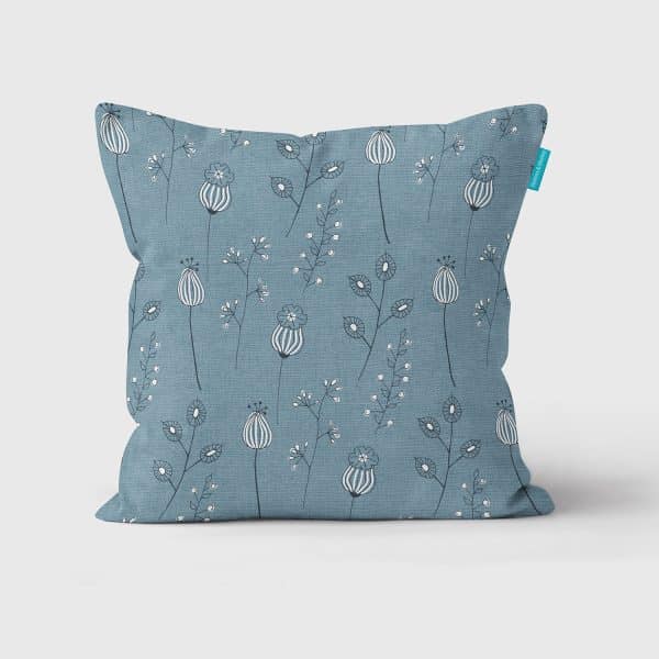 Poppies Alliums cushion | Denim Blue