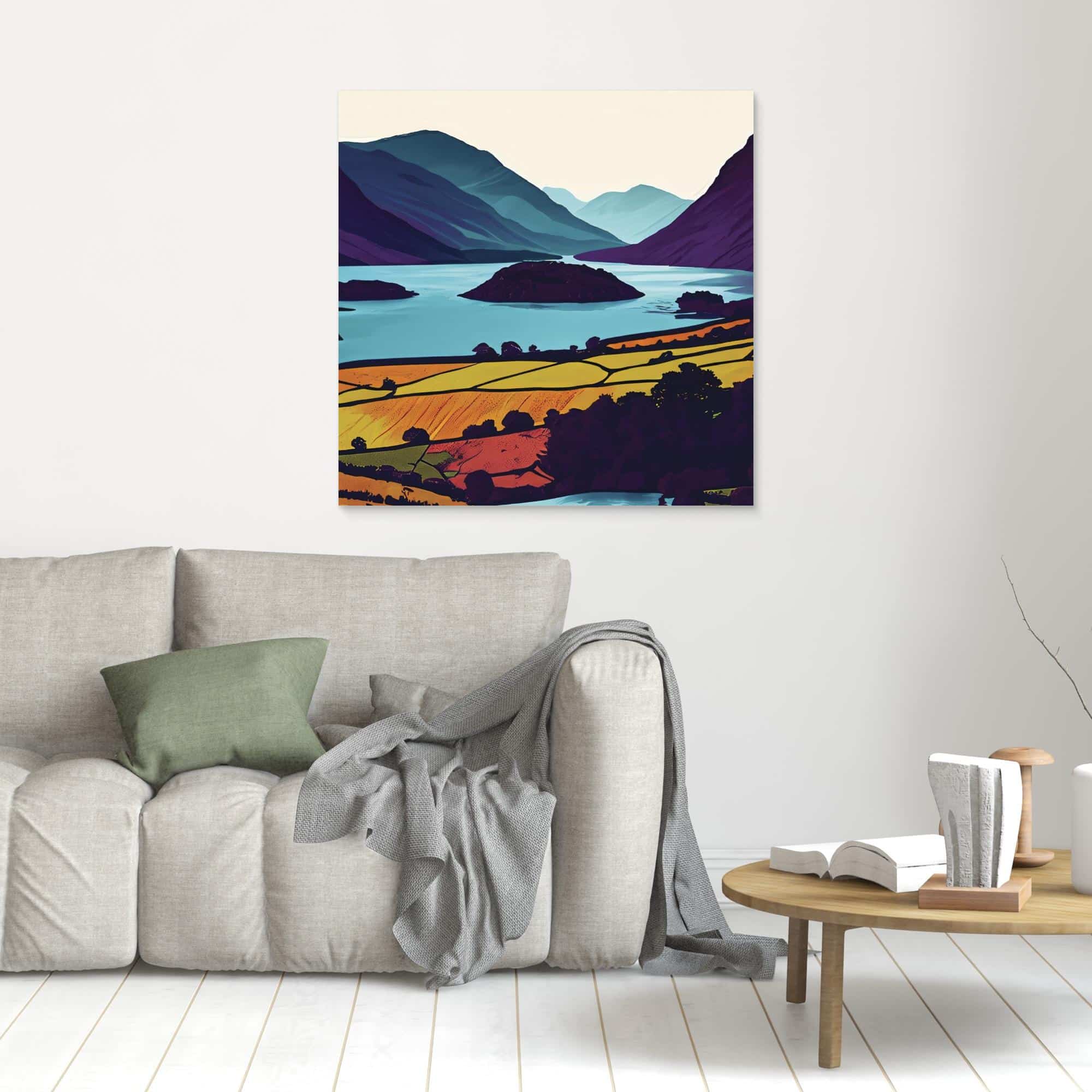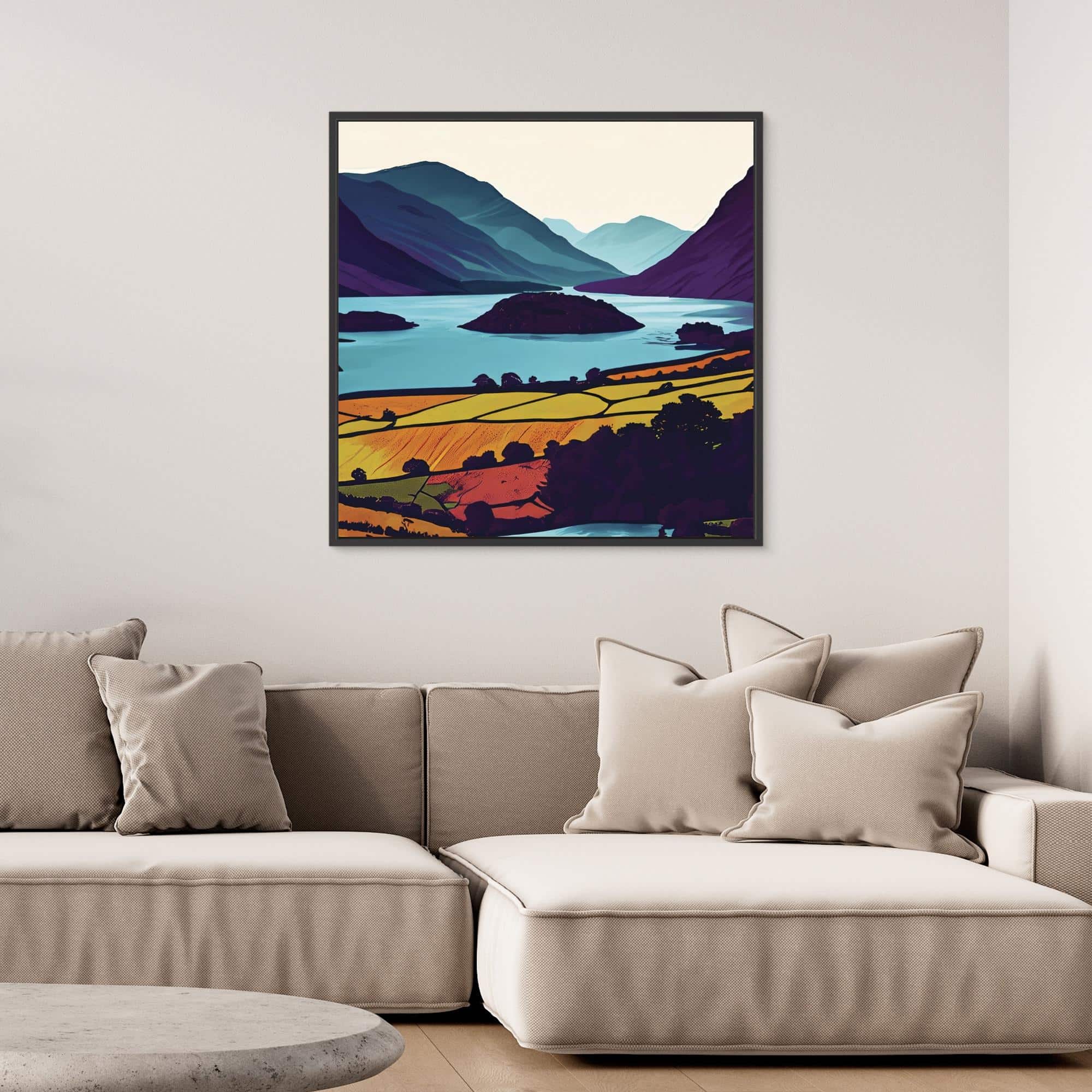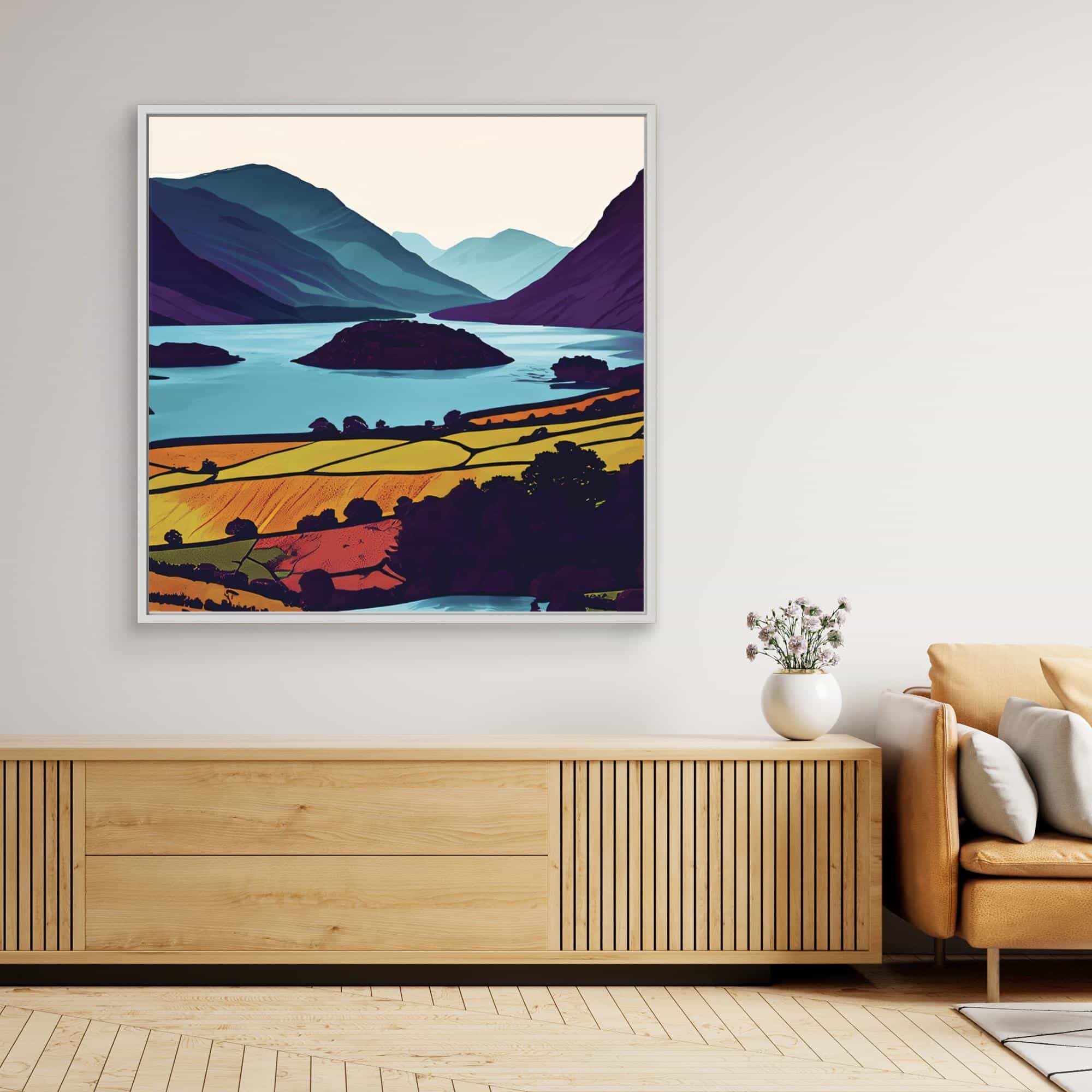 Peaks and lakes in bright colours feature on the prints to brighten up your walls.