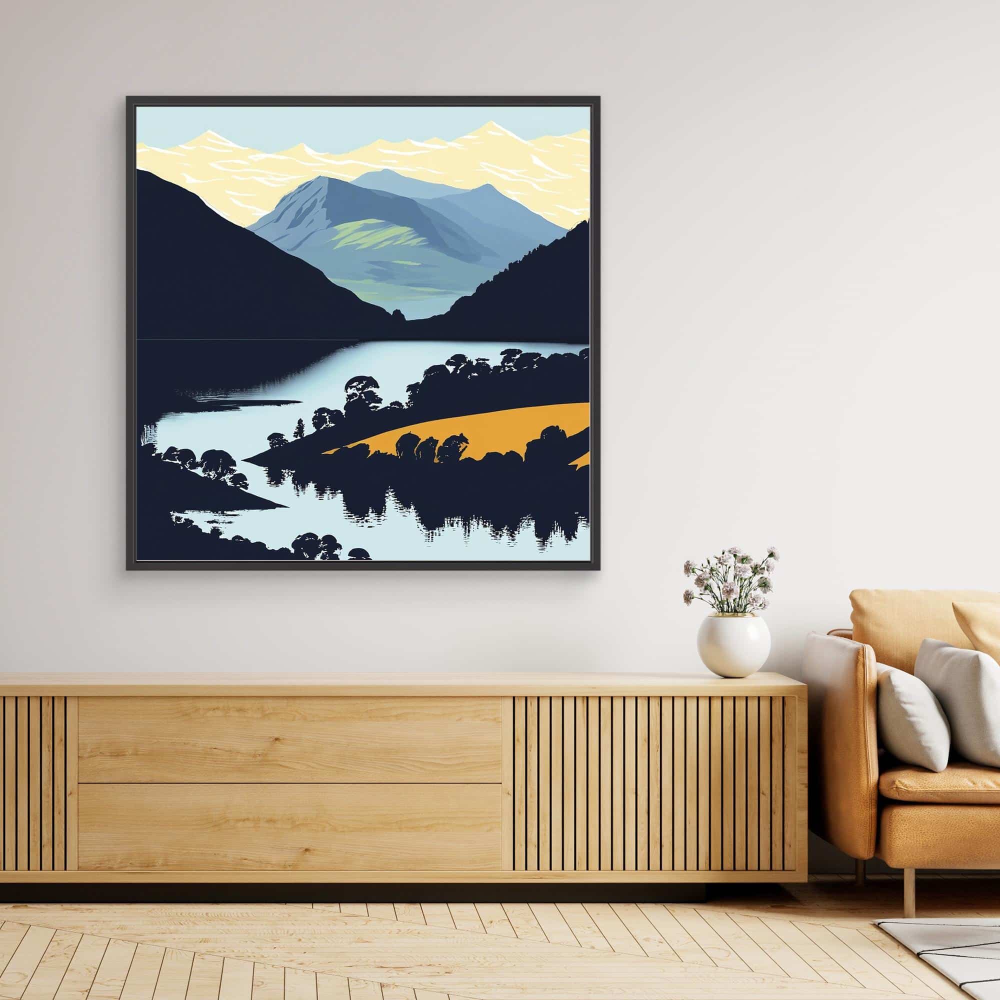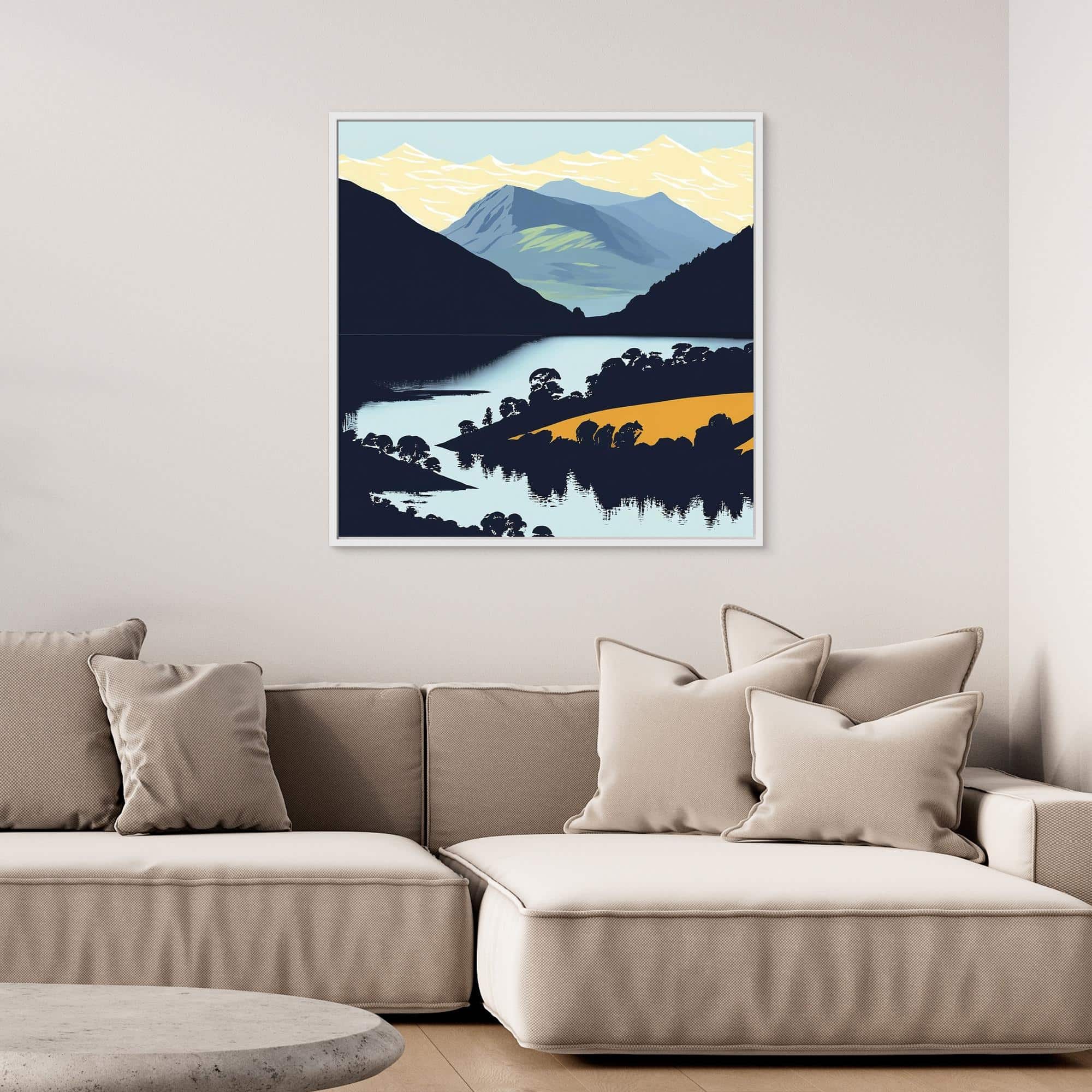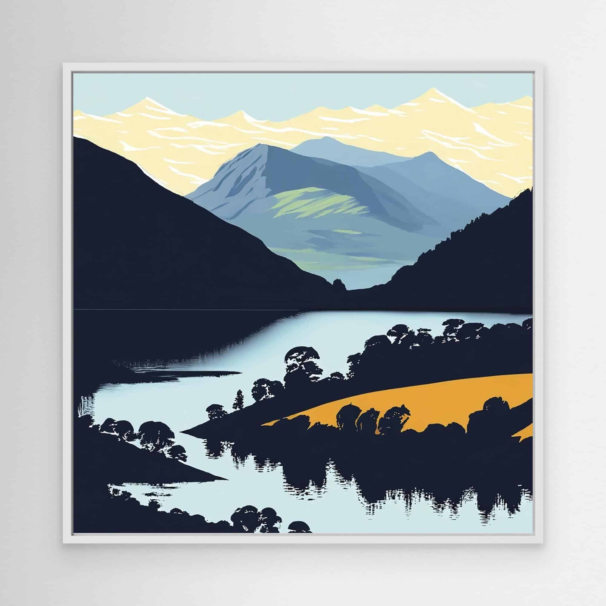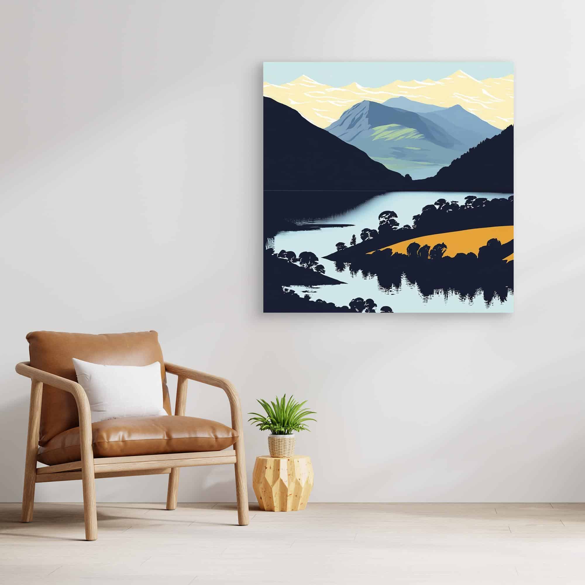 Peaks and lakes in bright colours feature on the prints to brighten up your walls.