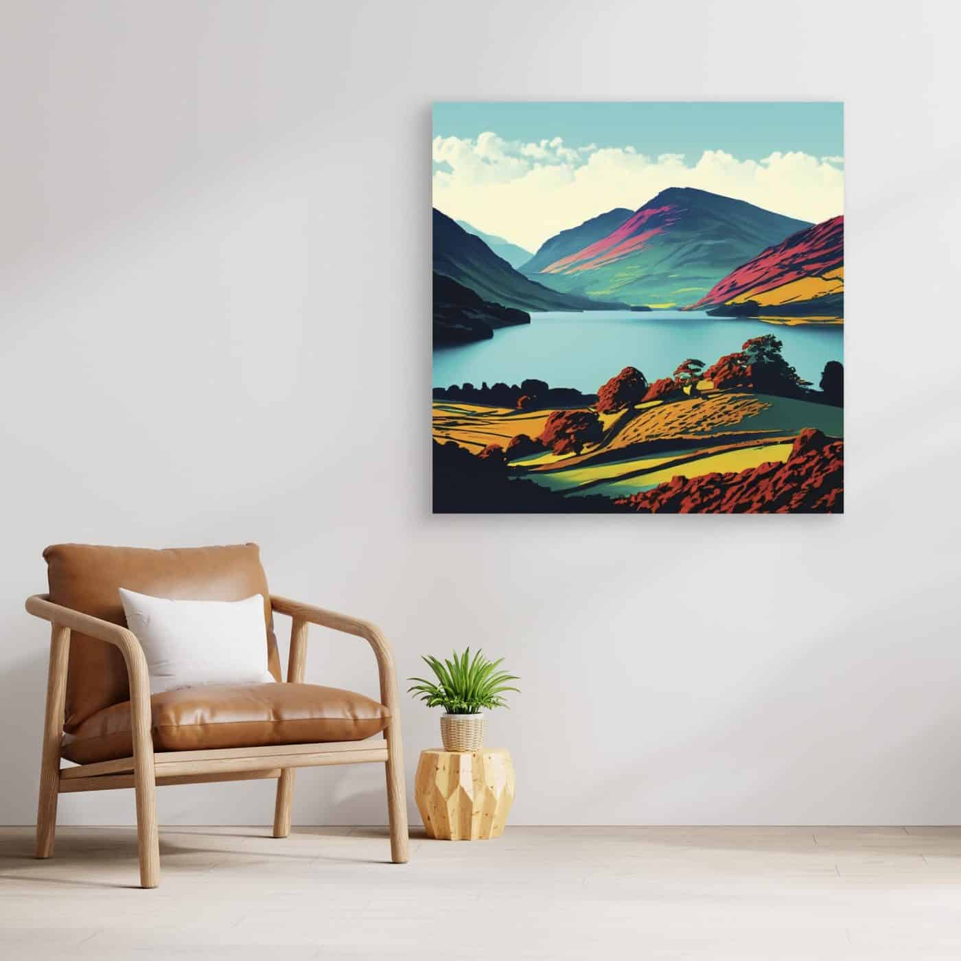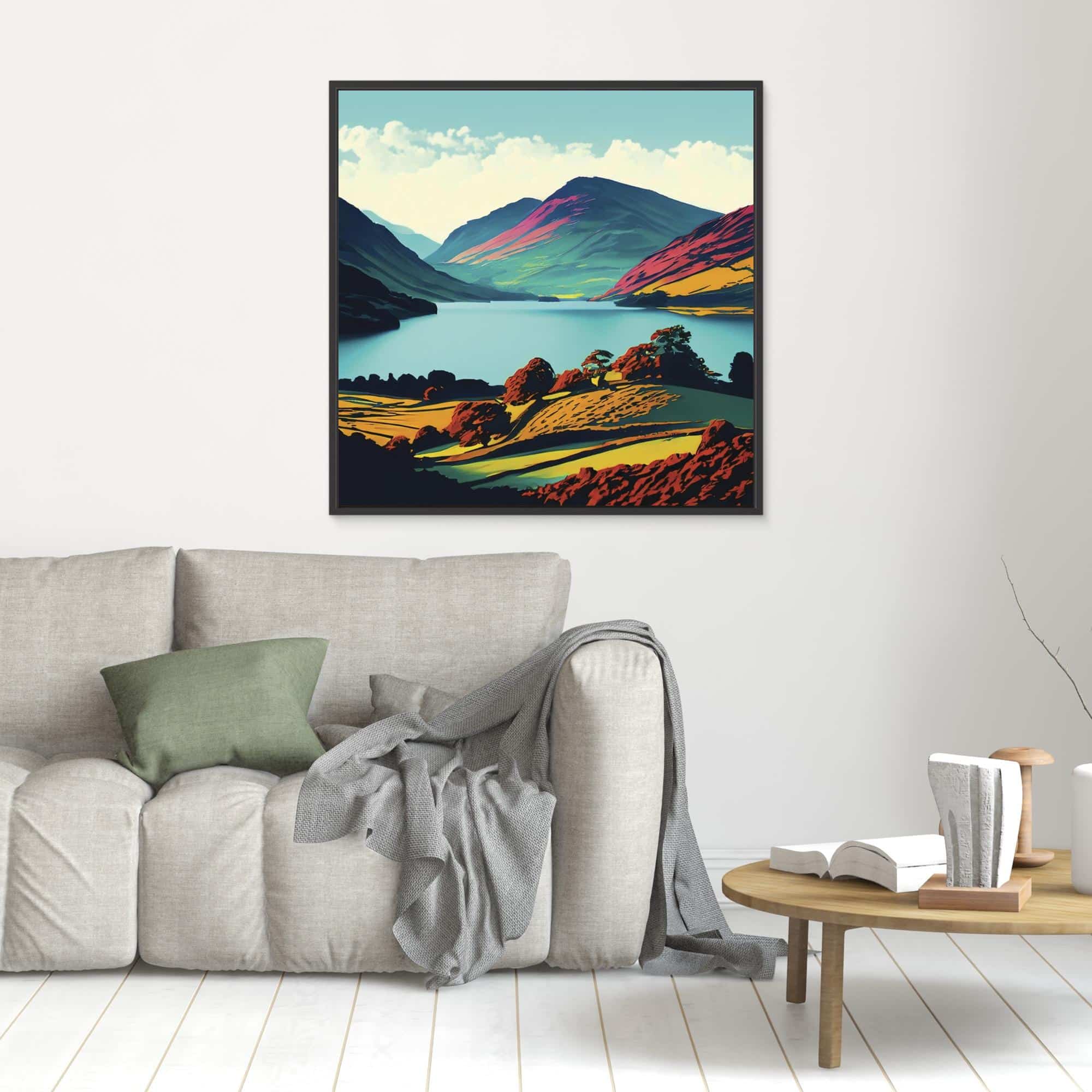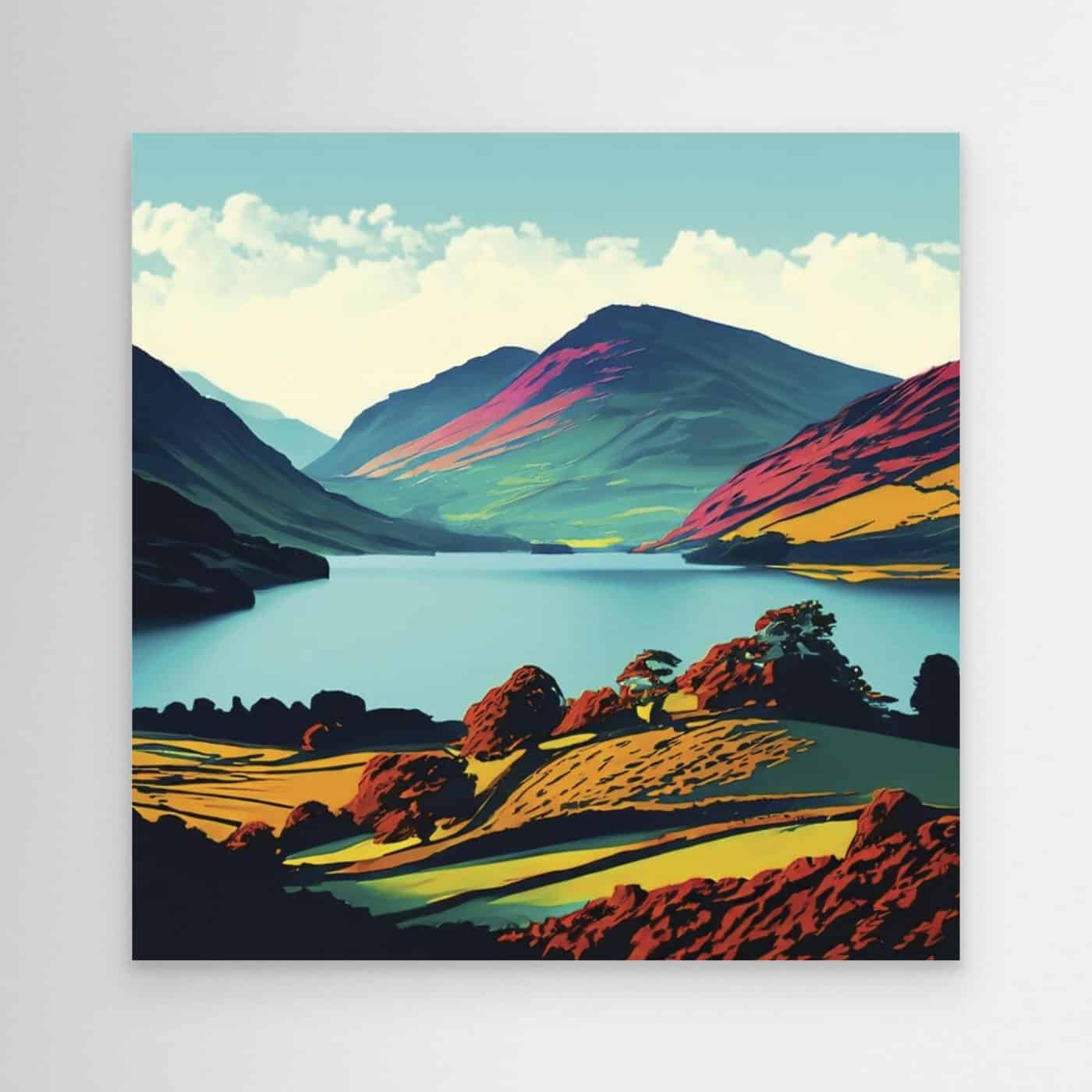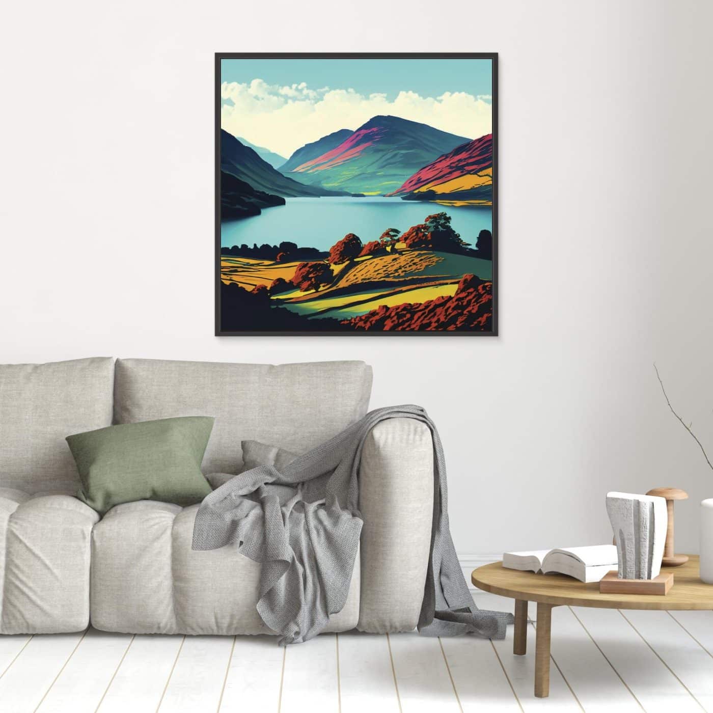 Peaks and lakes in bright colours feature on the prints to brighten up your walls.