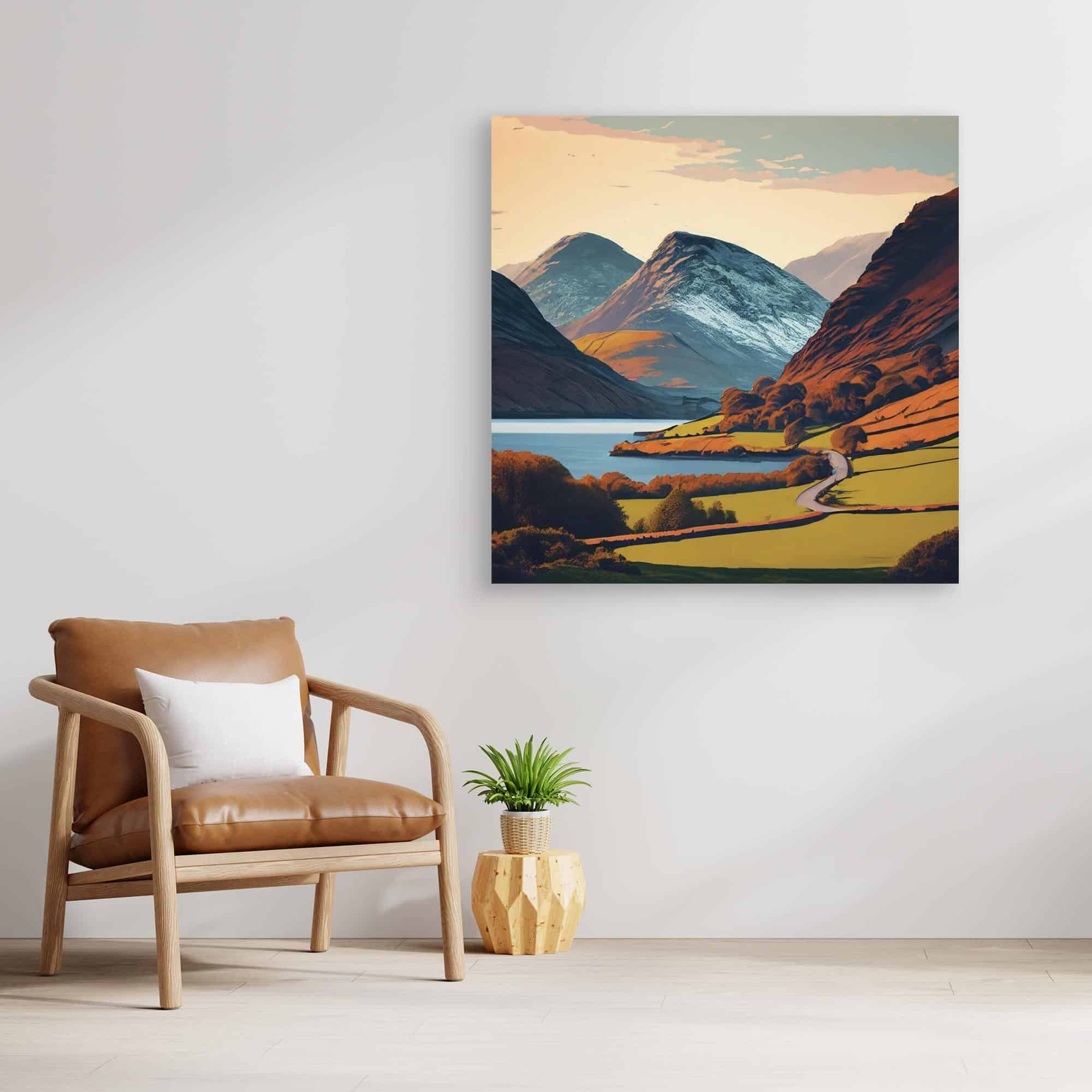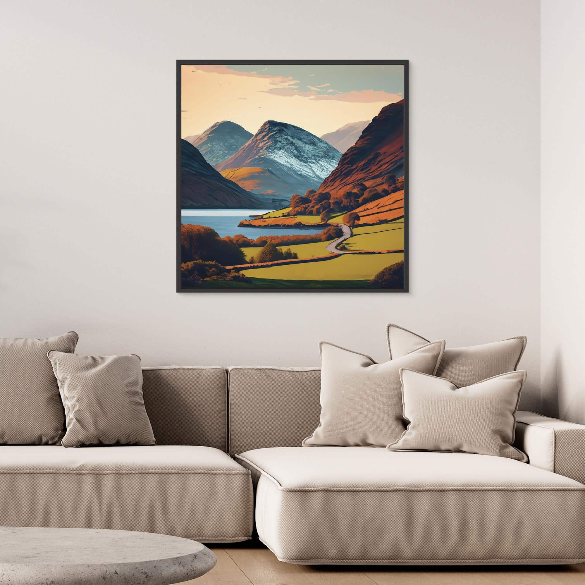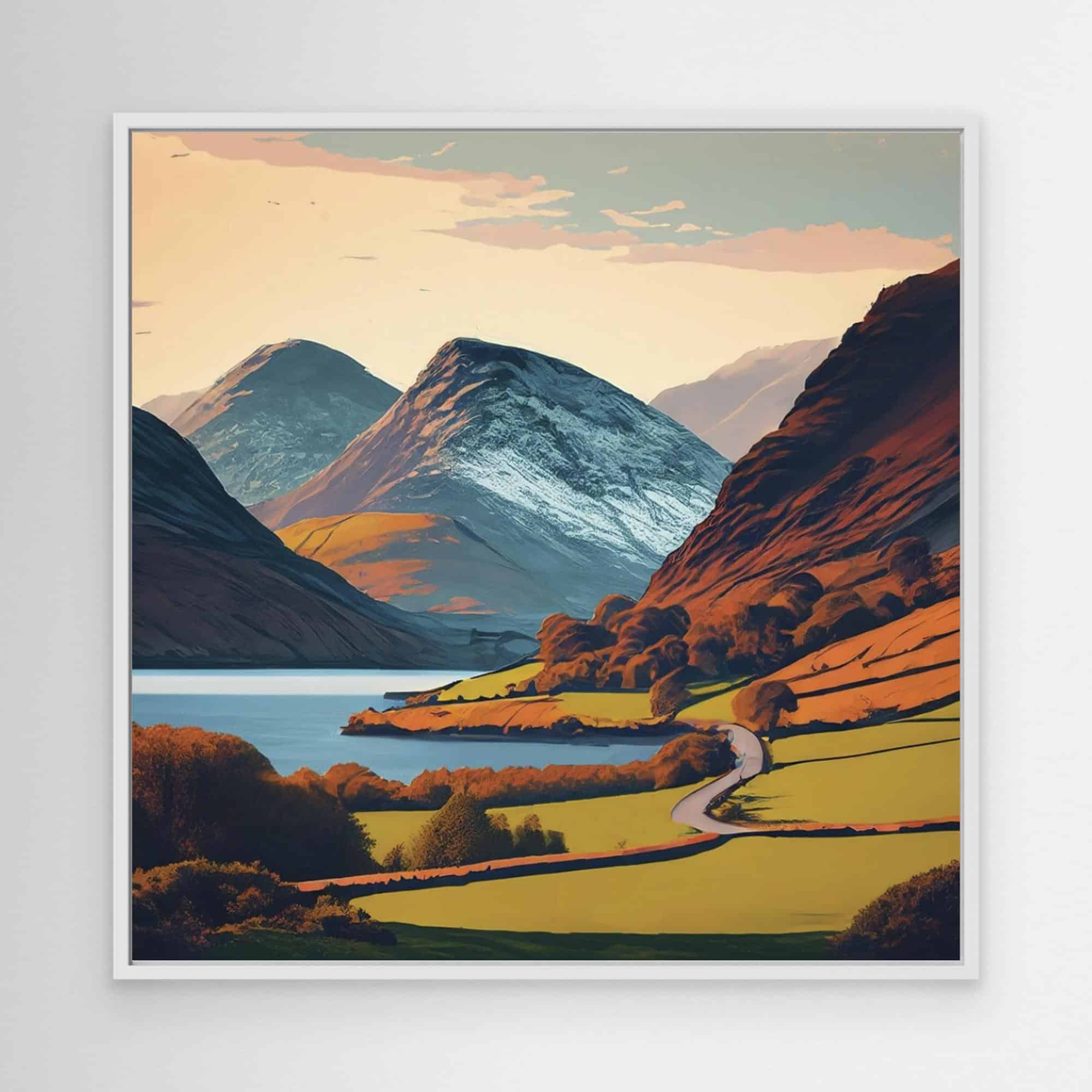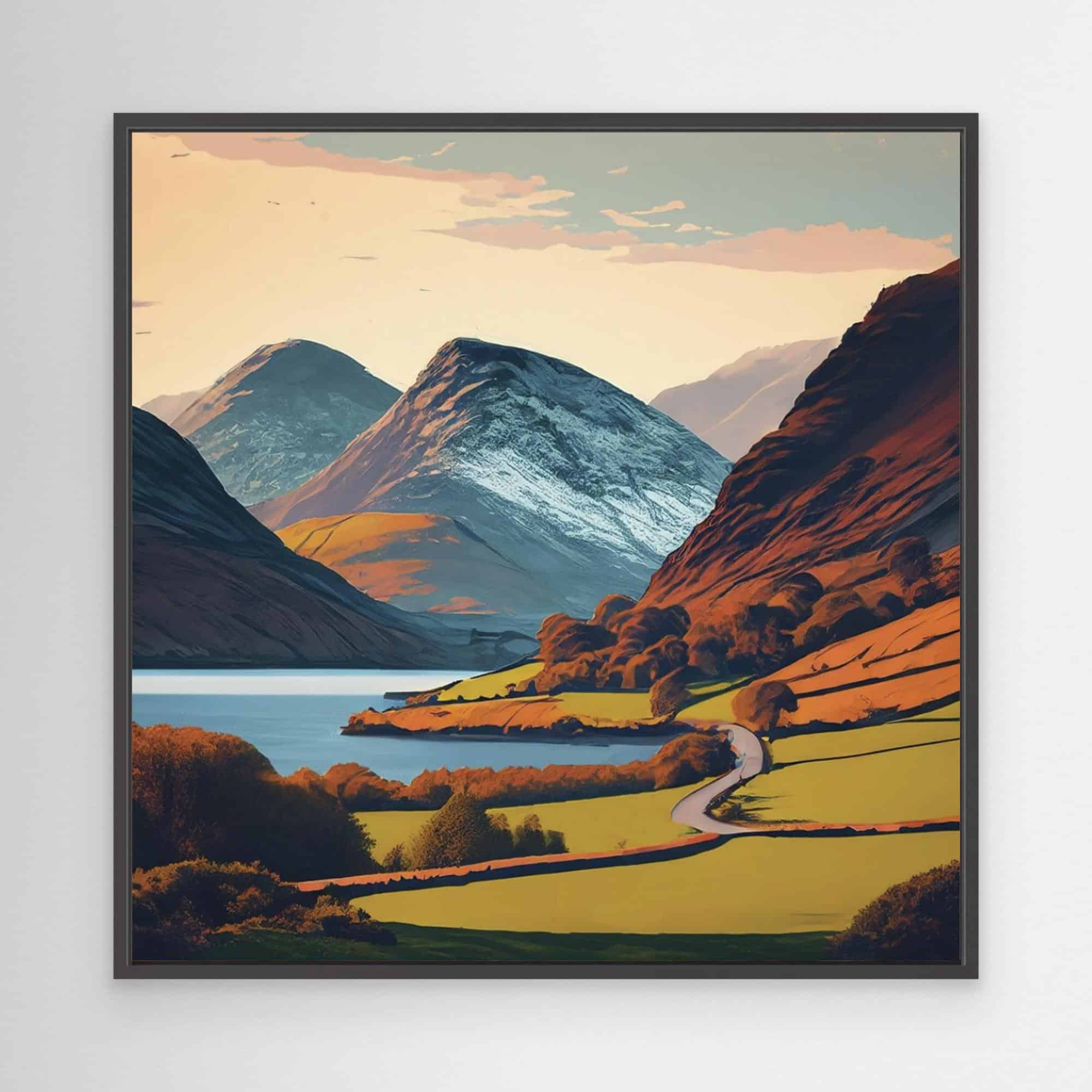 Peaks and lakes in bright colours feature on the prints to brighten up your walls.