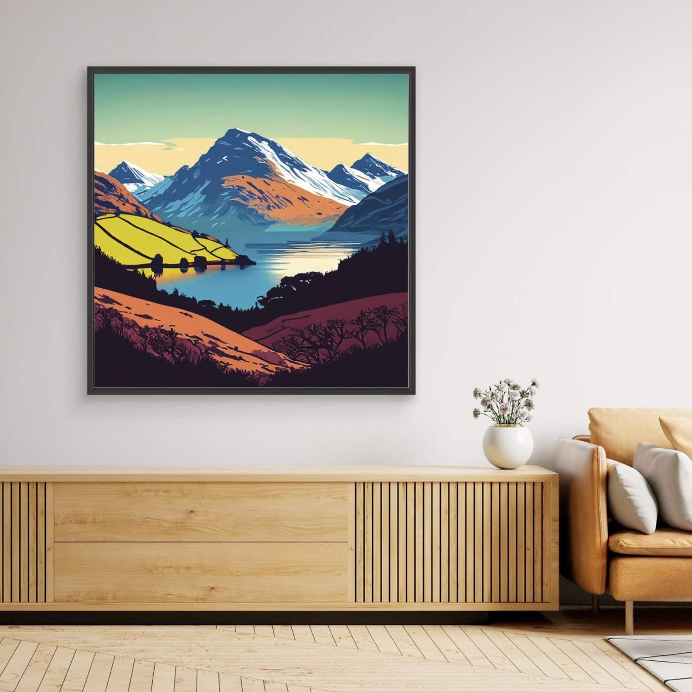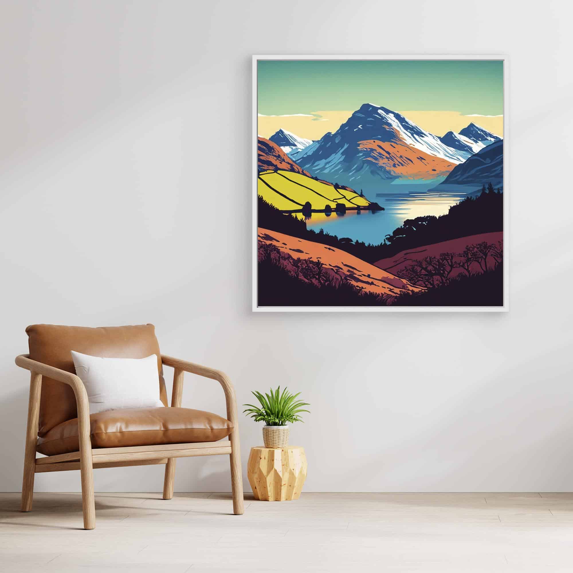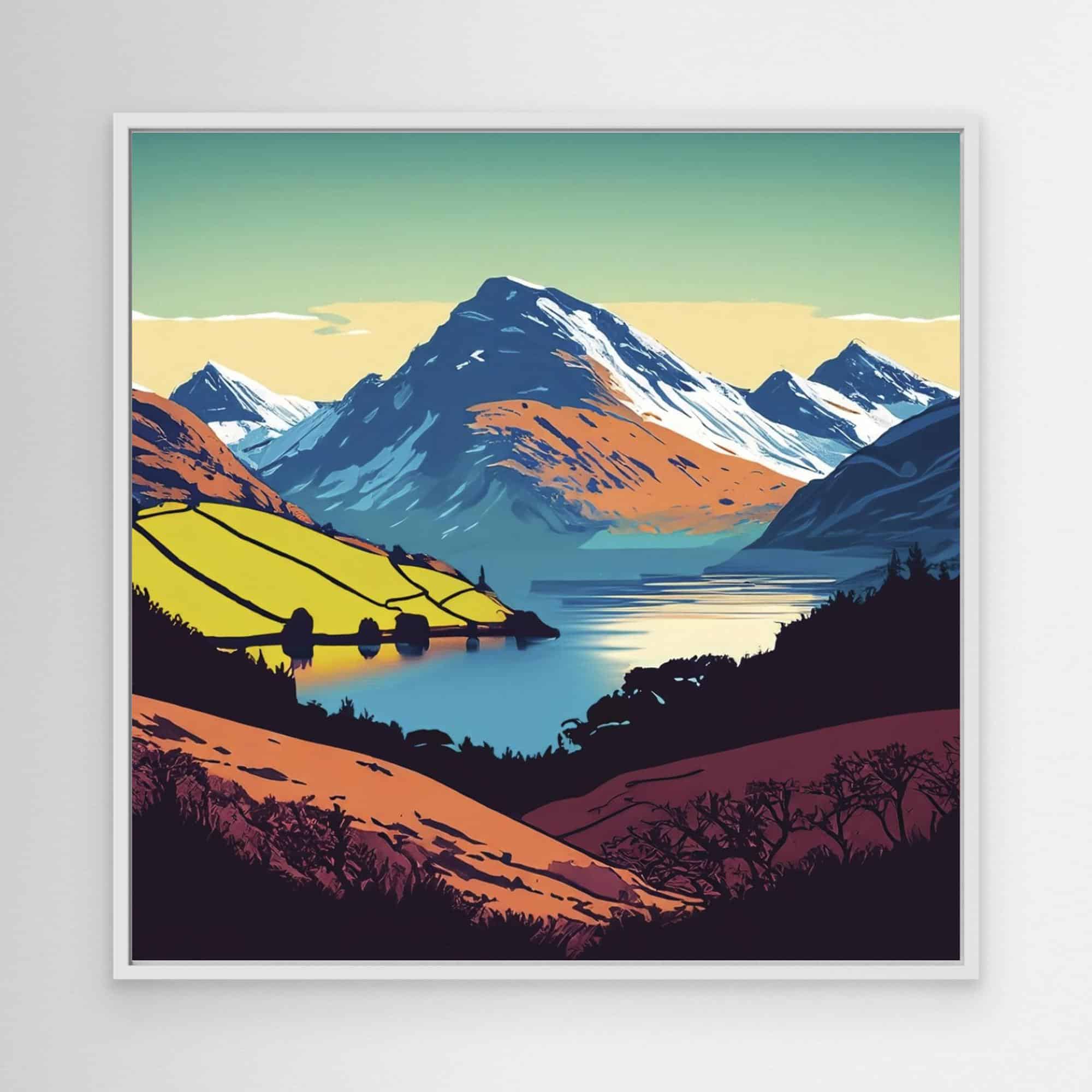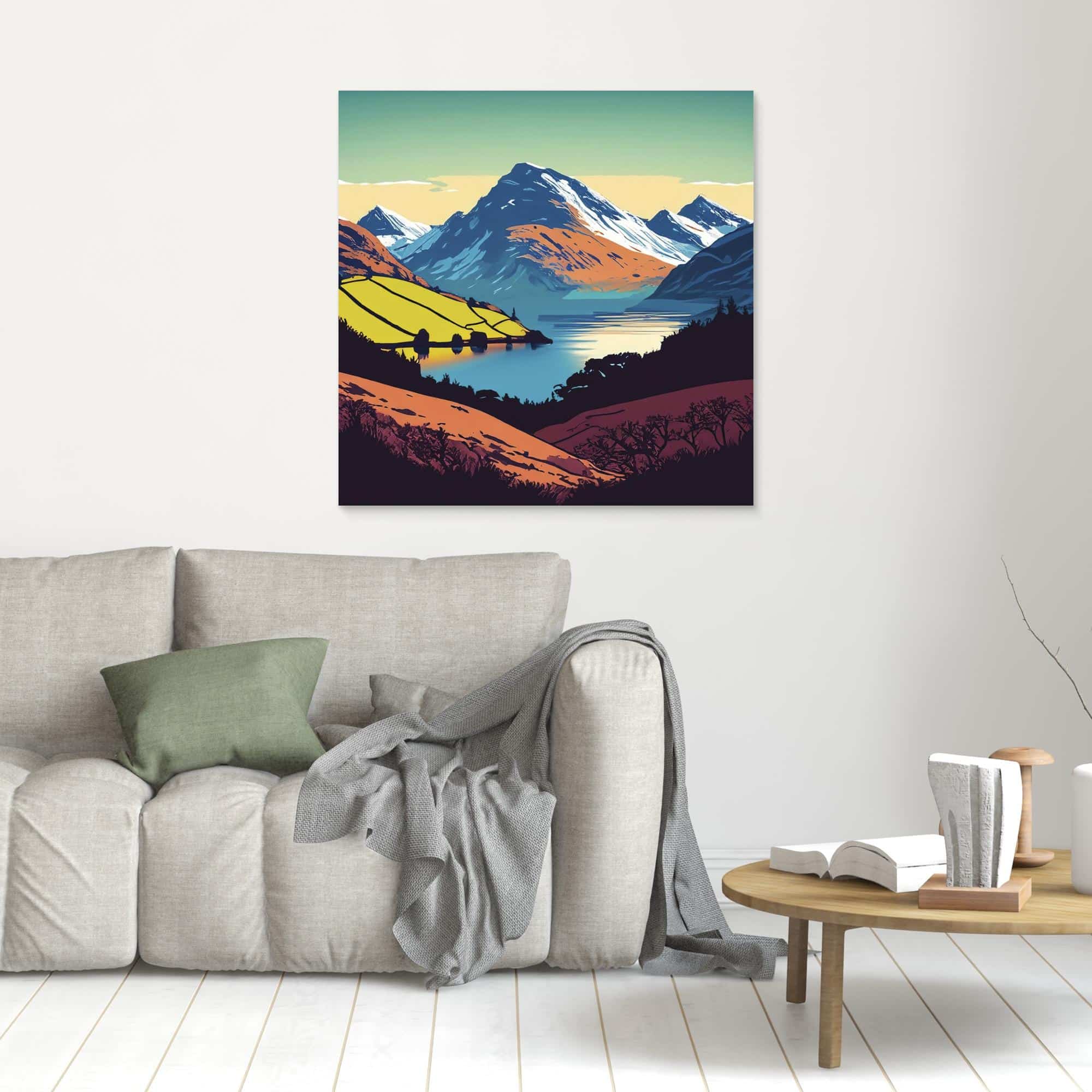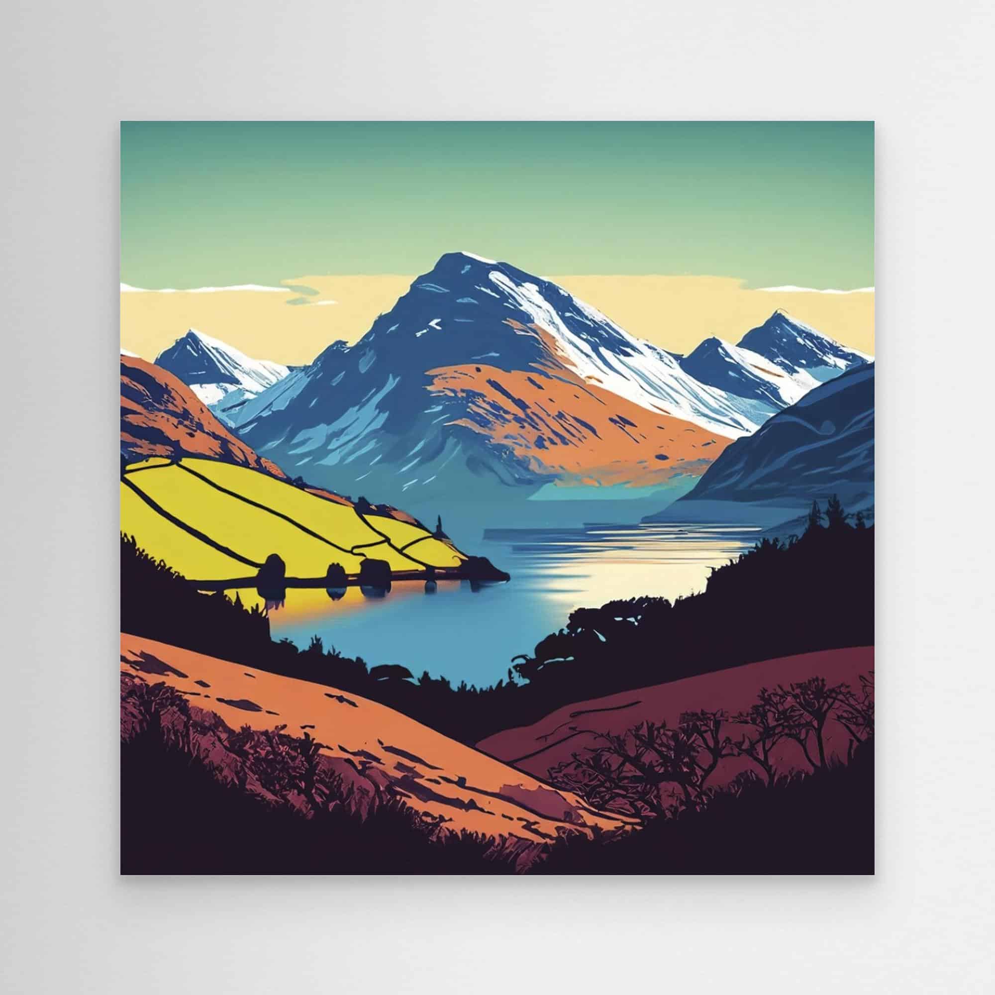 Peaks and lakes in bright colours feature on the prints to brighten up your walls.
