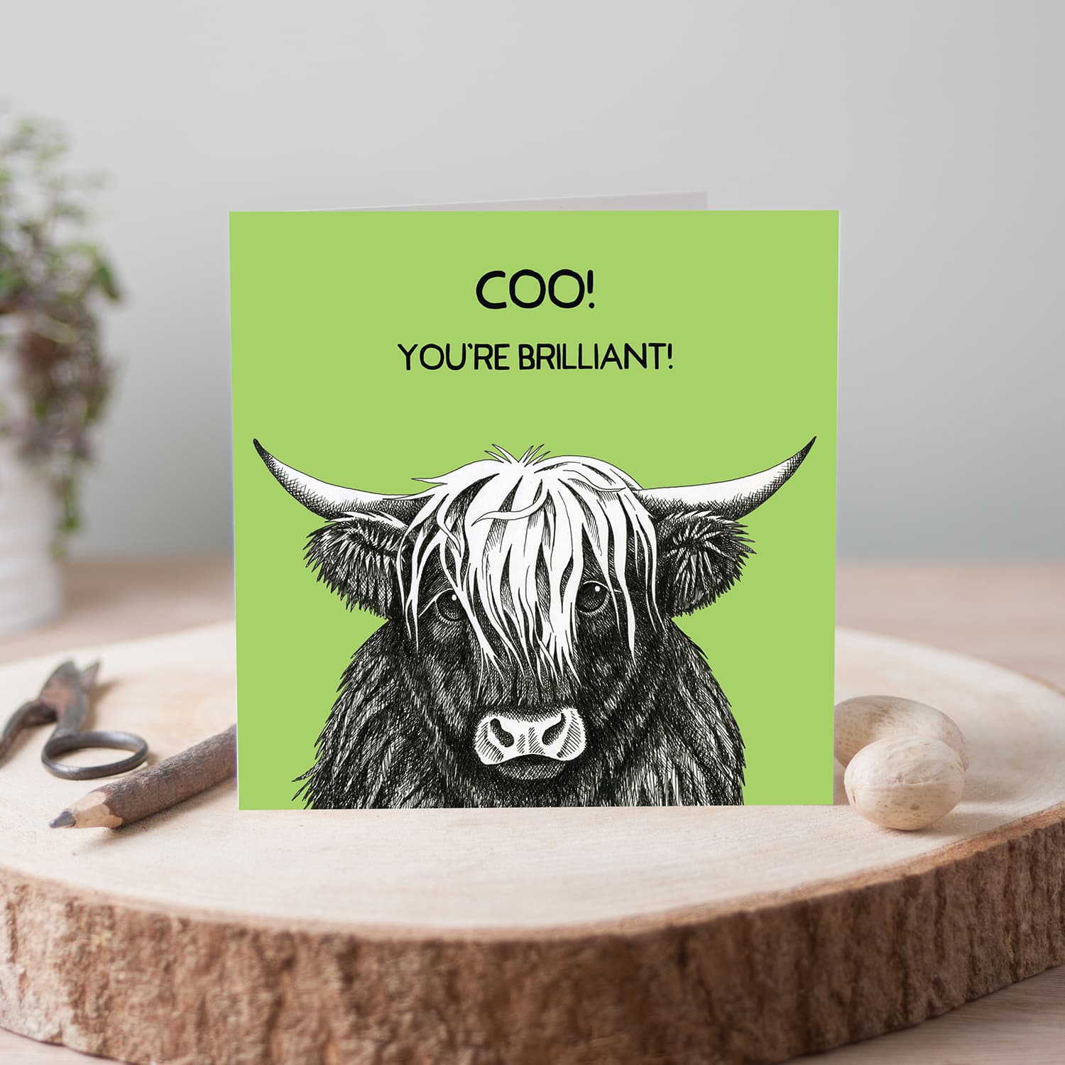 Funny and quirky range with Animals and words in ink on brightly coloured backgrounds.
