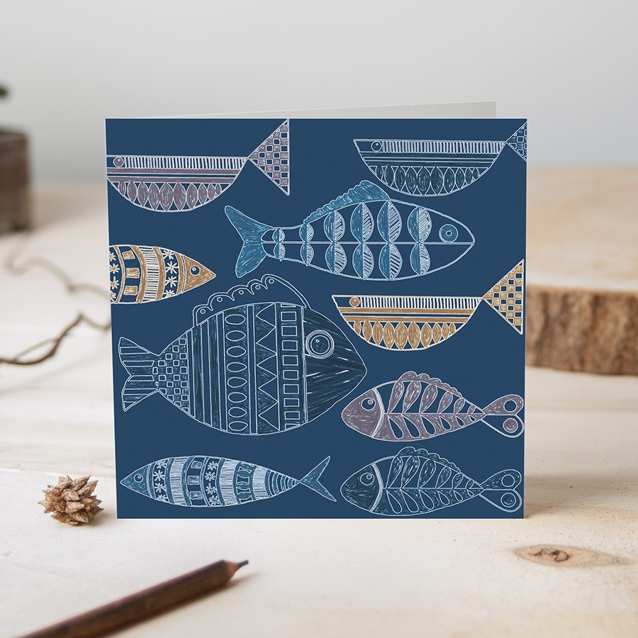 Fish, shells, crabs and seagulls play happily across the card collection with a whimsical take that is purely Perkins & Morley.