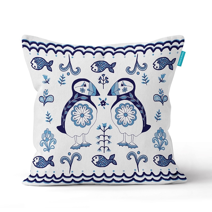 delft puffin cushion