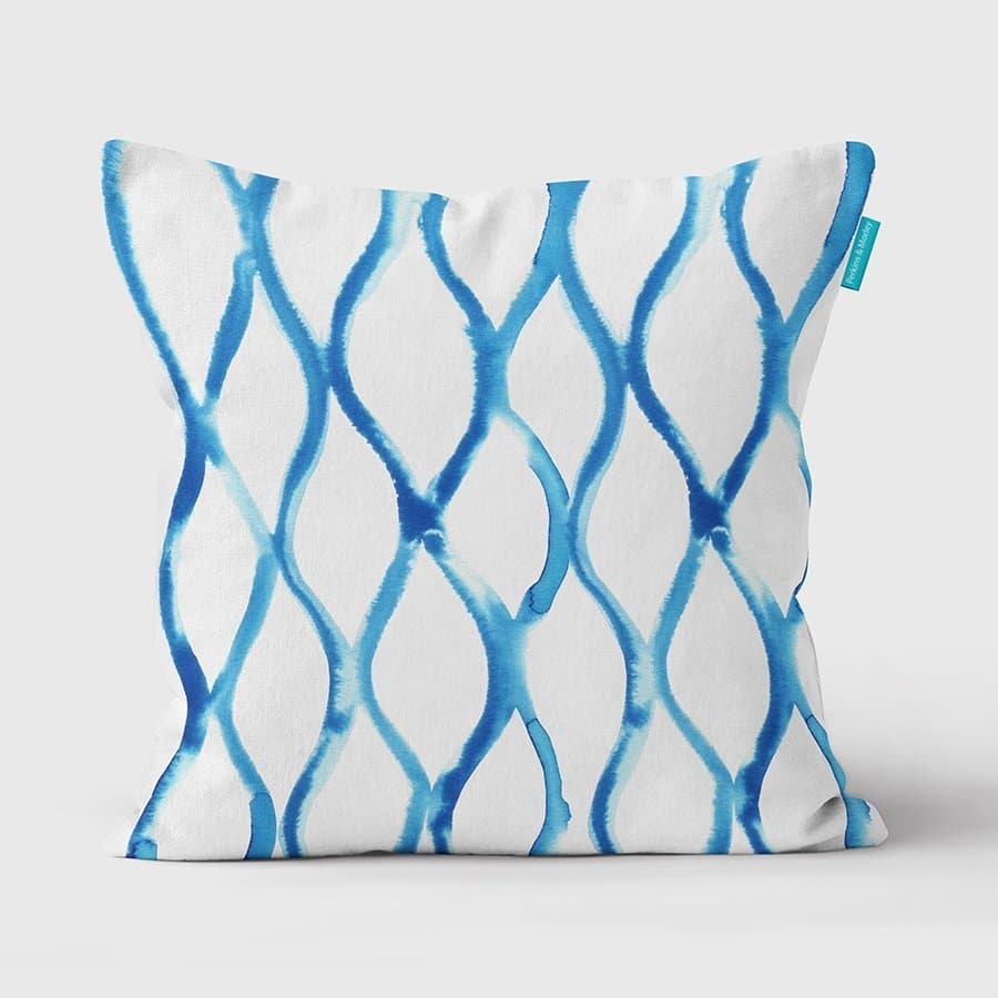 Our Elemental cushion range has simple blue wash lines and watercolour effects by Jan Morley.