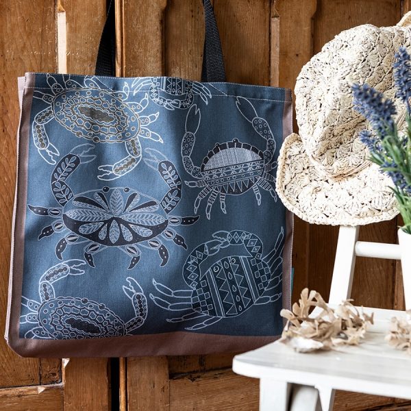 Scraffito combines the lure of the sea and its organic shapes with the pared back palette of blues, purples, brown and ochre.