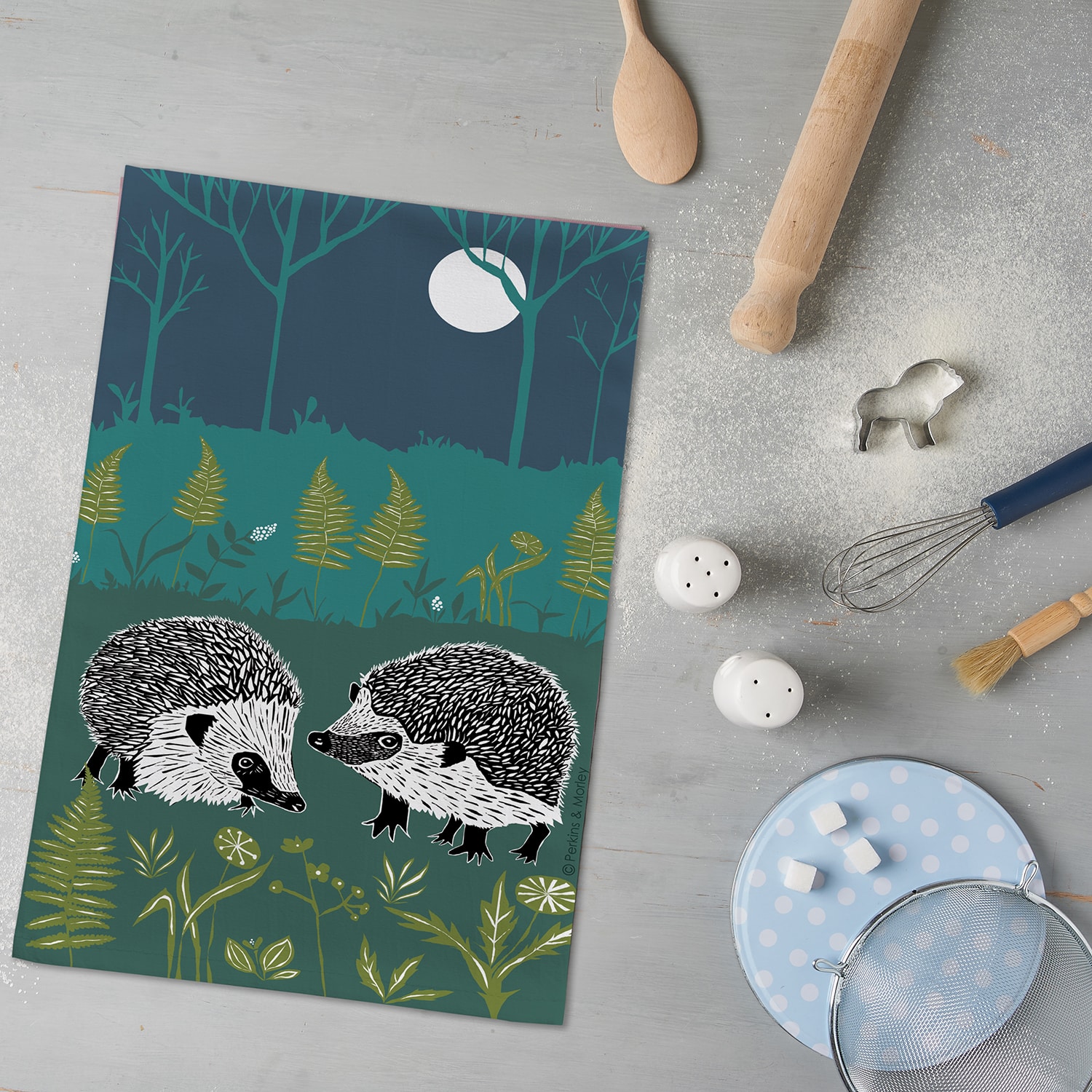 Hedgehog tea towel from One World collection by Perkins & Morley.